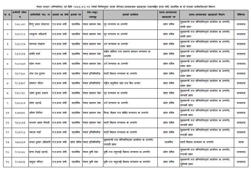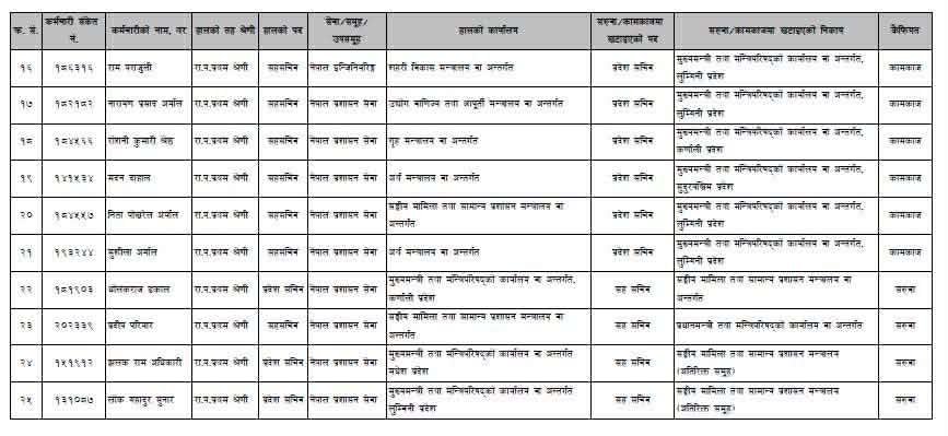 - ४ जनालाई मुख्यमन्त्री तथा मन्त्रिपरिषद् कार्यालयमै सह–सचिवको रूपमा कायम राखिएको छ